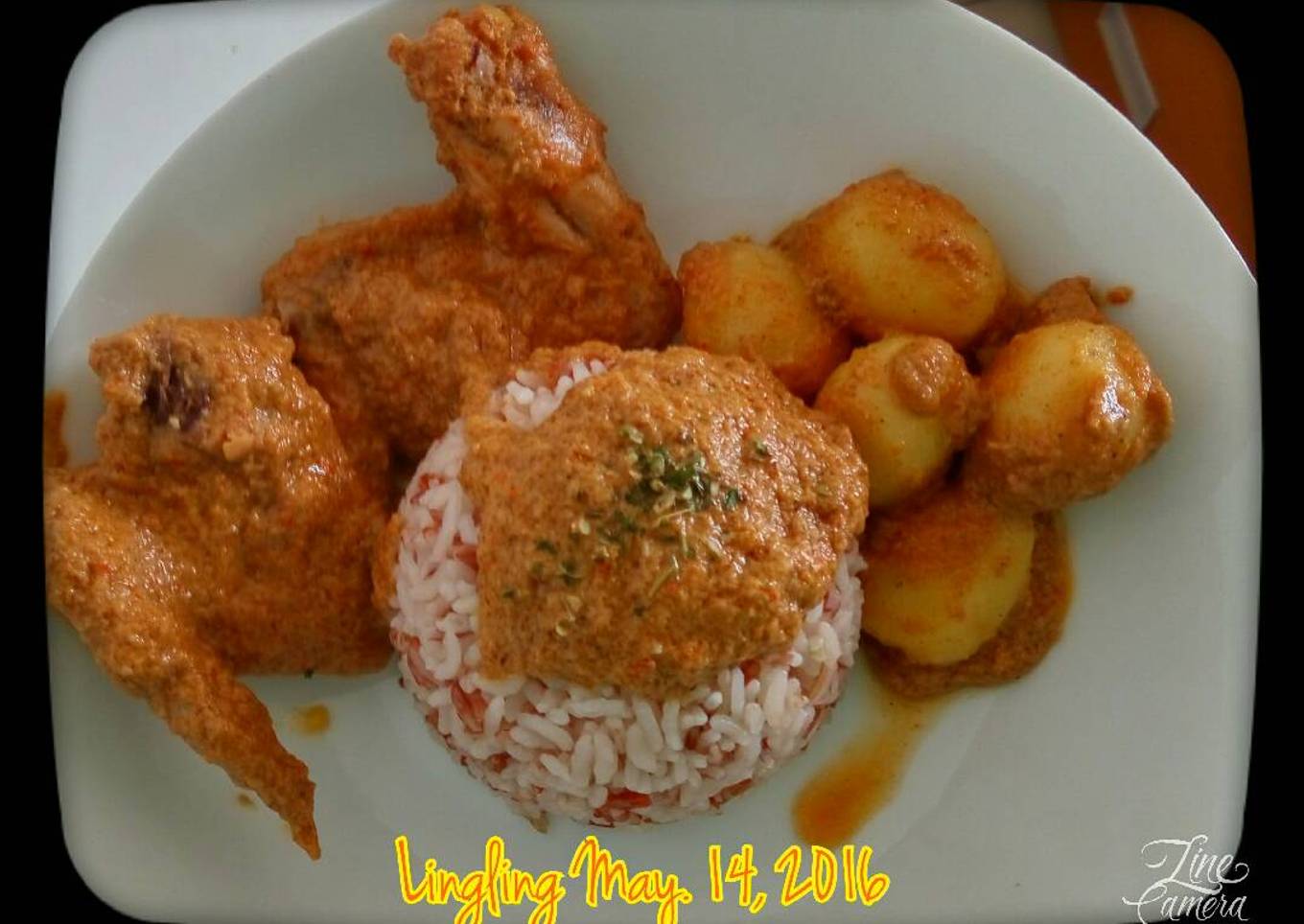 - Santan di campur masak dengan bumbu halus dan daun jeruk,daun kunyit,sereh masak hingga mendidih lalu masukkan ayam dan kentang