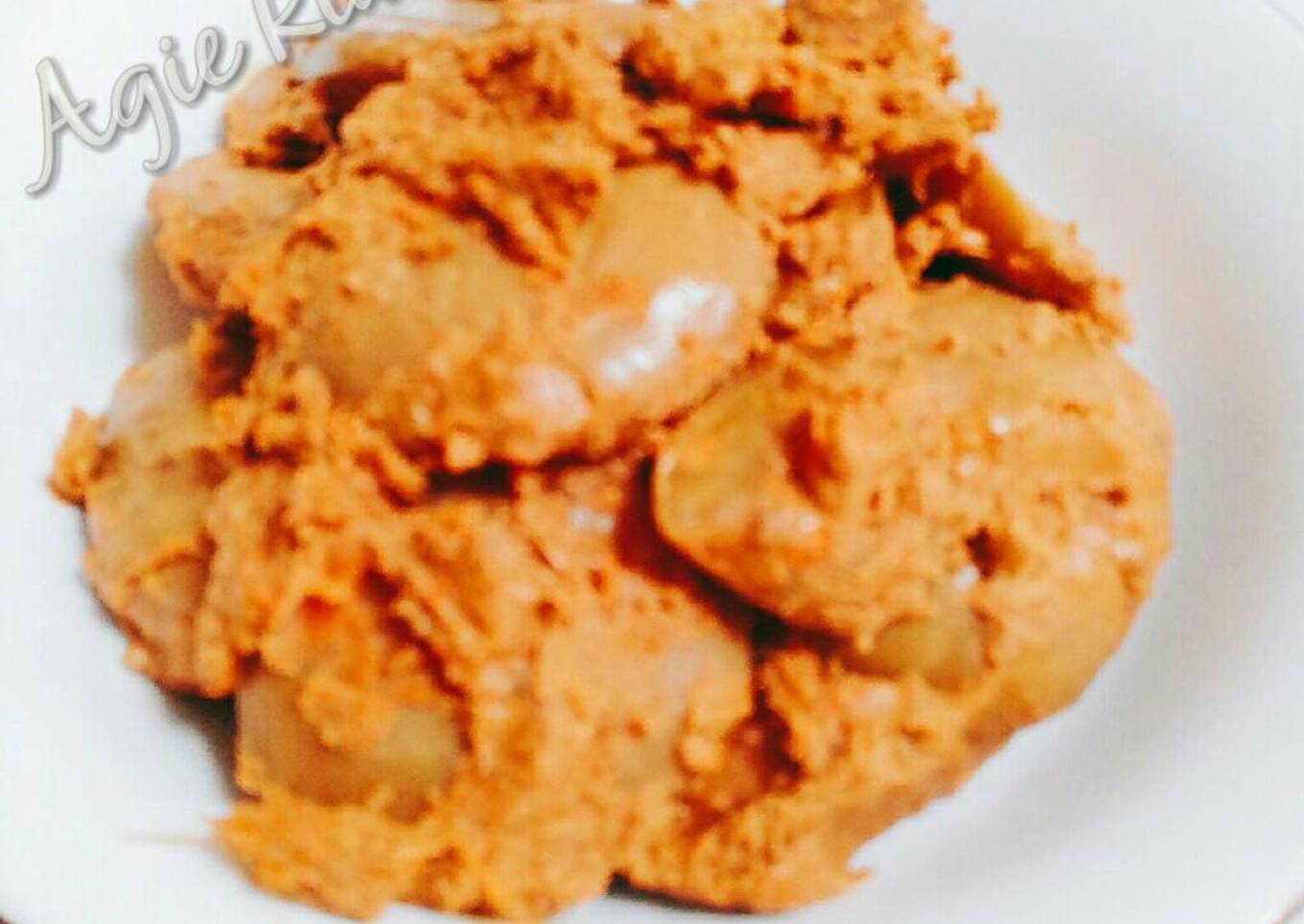 - Masukkan 1 sachet santan kara yg udh d campur air kurleb 100 ml aduk rata kecilkan api, diamkan sampai air menyusut, sesekali d aduk